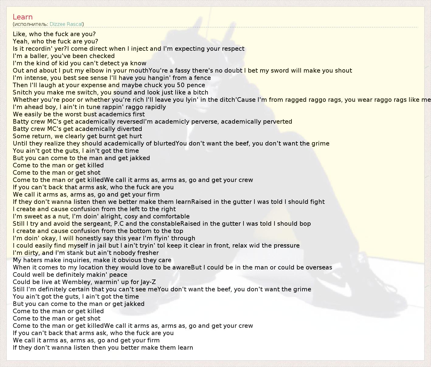 Это интересно:Когда-то Dizzee знали под именем Dylan Mills. Безотцовщина и малолетний преступник, из той категории, что принято называть "трудными детьми". Помнится, в моей нормальной советской школе подобных не вписывающихся в рамки было принято списывать в специальные классы коррекции – дабы не разлагали личным примером неиспорченных деток. Как правило, подобные отроки ясно представляют, куда их занесет... продолжение