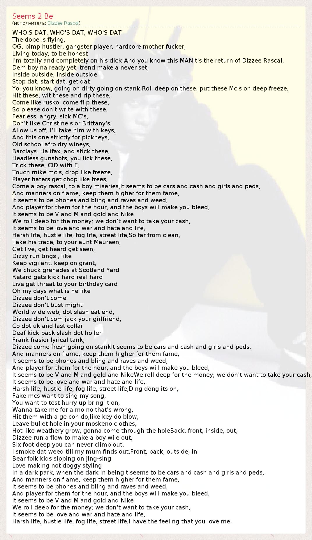 А как ты думаешь, о чем песня "Seems 2 Be" ?