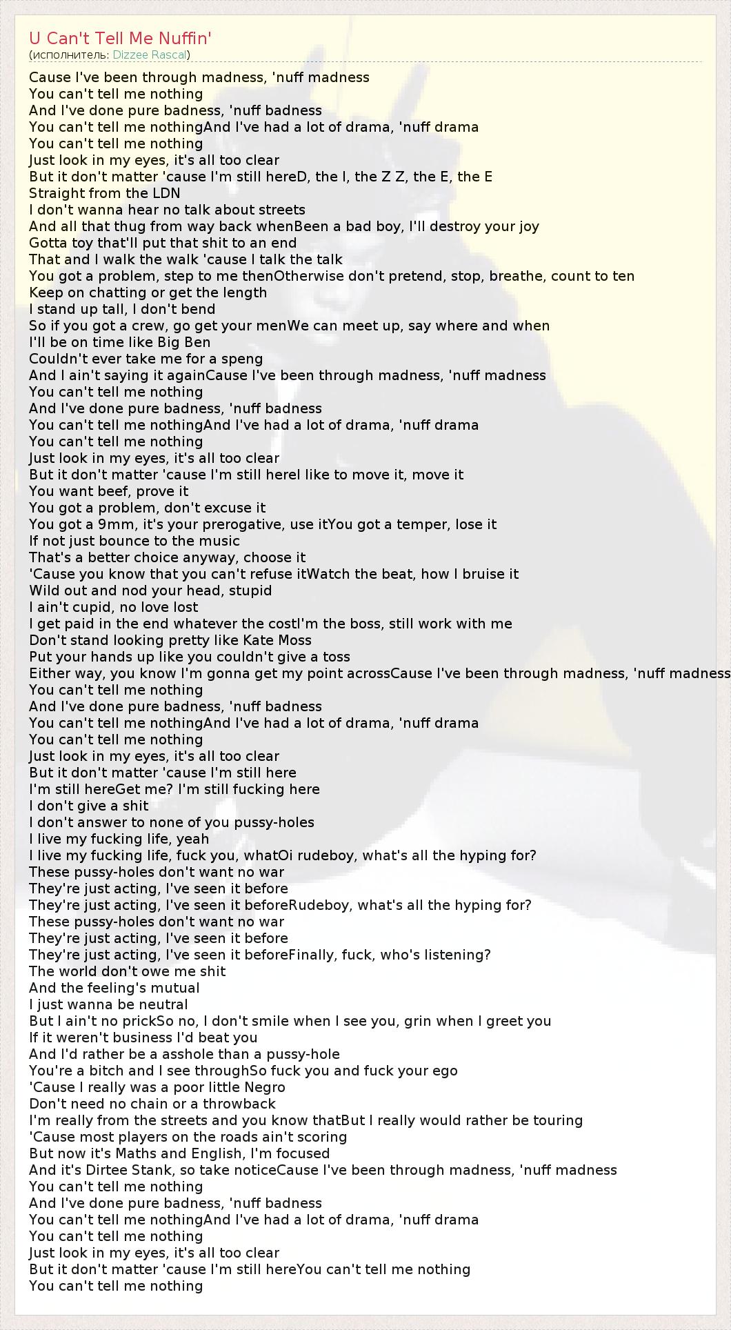 А как ты думаешь, о чем песня "U Can't Tell Me Nuffin'" ?