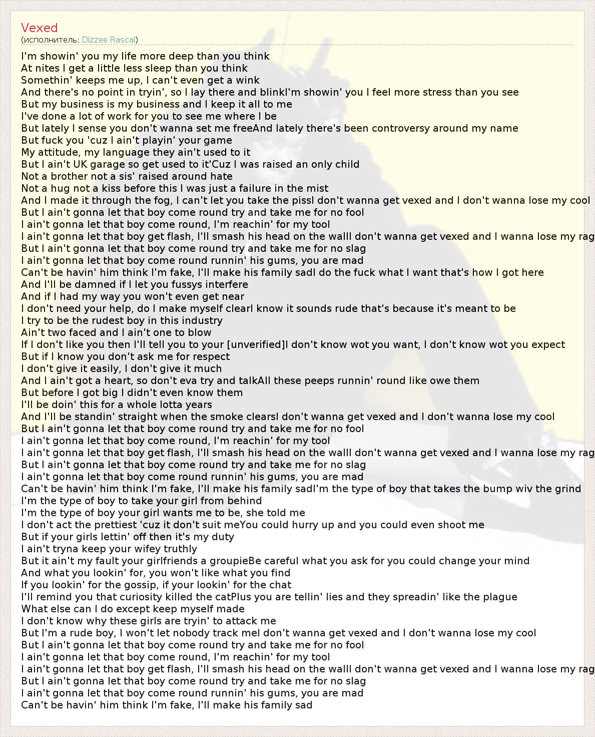 А как ты думаешь, о чем песня "Vexed" ?