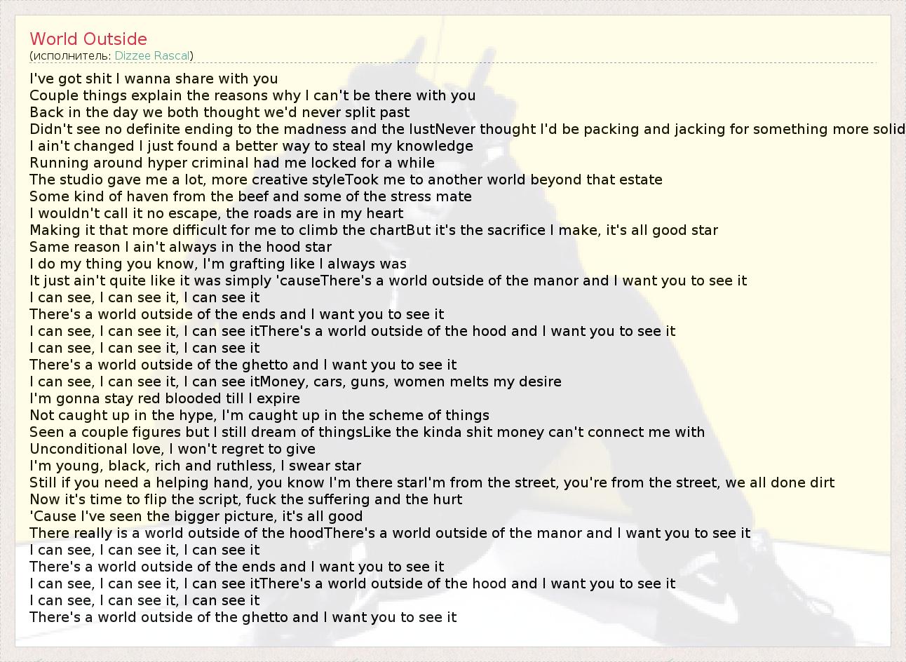 Это интересно:Когда-то Dizzee знали под именем Dylan Mills. Безотцовщина и малолетний преступник, из той категории, что принято называть "трудными детьми". Помнится, в моей нормальной советской школе подобных не вписывающихся в рамки было принято списывать в специальные классы коррекции – дабы не разлагали личным примером неиспорченных деток. Как правило, подобные отроки ясно представляют, куда их занесет... продолжение