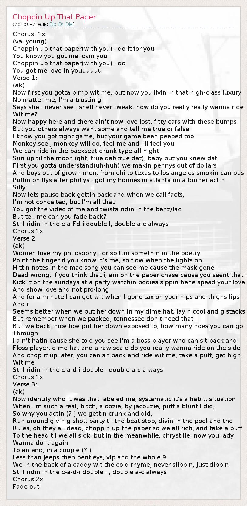А как ты думаешь, о чем песня "Choppin Up That Paper" ?