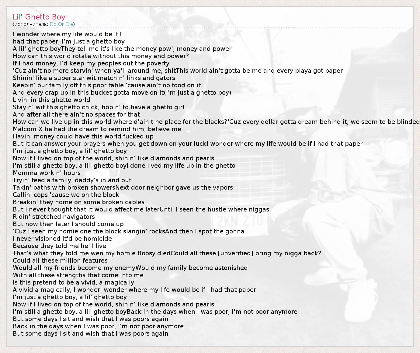 А как ты думаешь, о чем песня "Lil' Ghetto Boy" ?