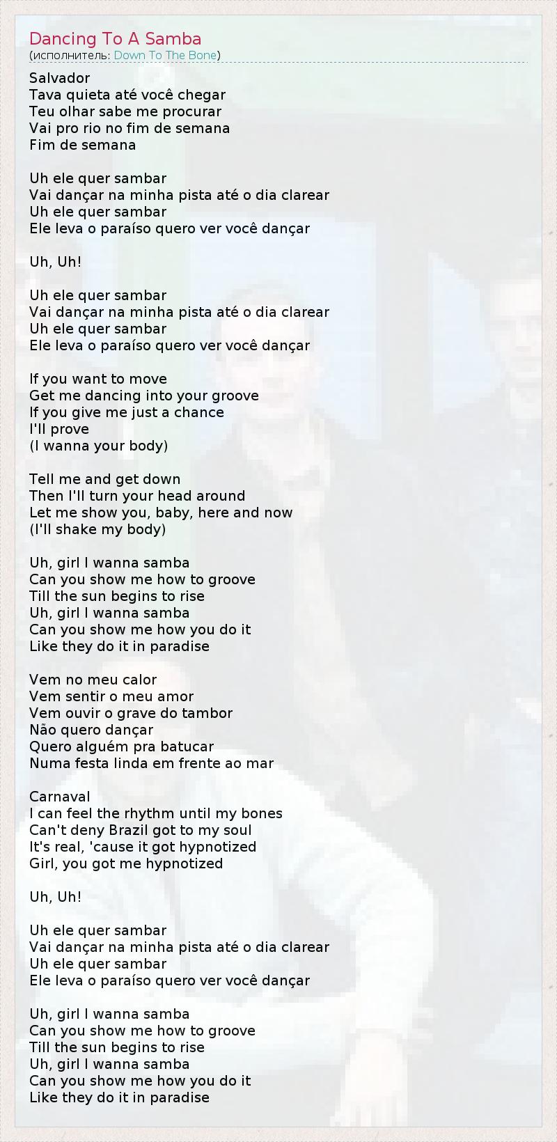 А как ты думаешь, о чем песня "Dancing To A Samba" ?