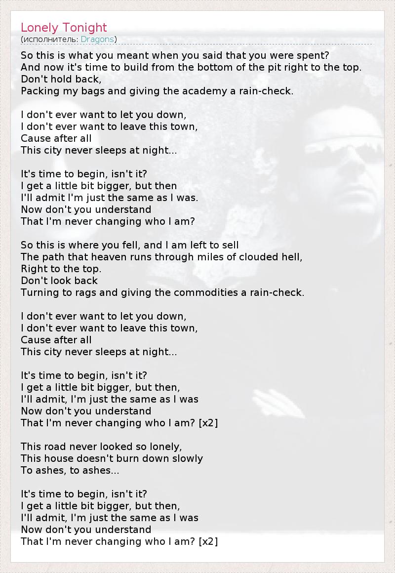 А как ты думаешь, о чем песня "Lonely Tonight" ?