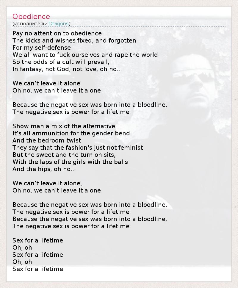 А как ты думаешь, о чем песня "Obedience" ?