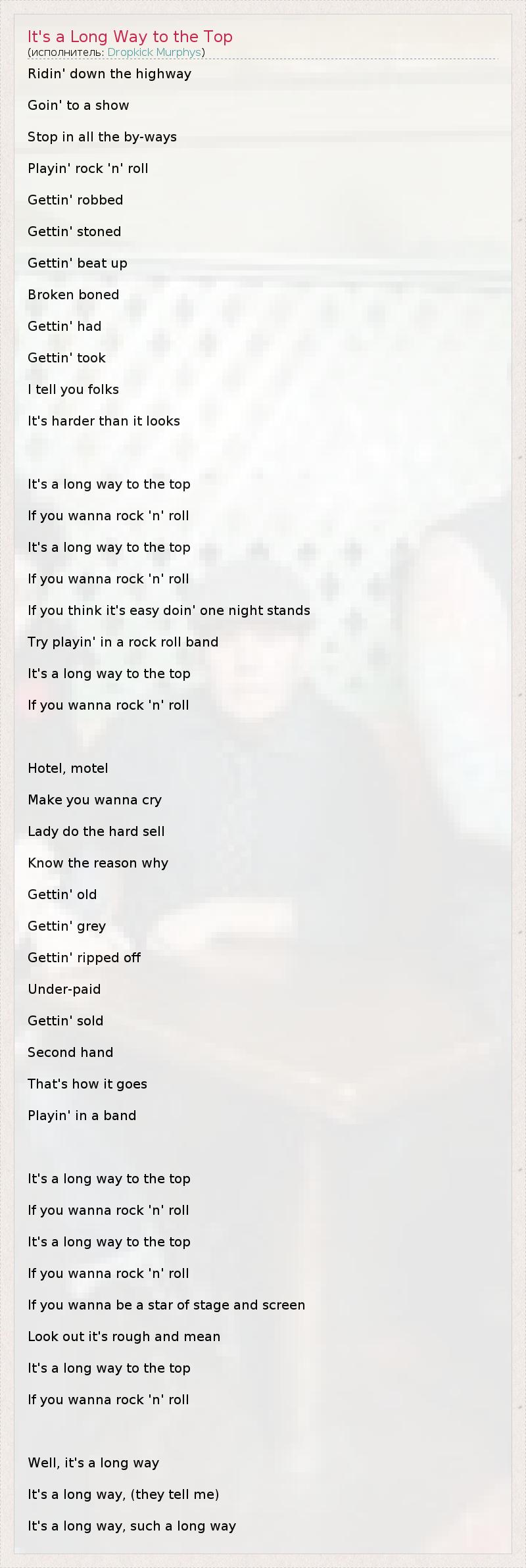 А как ты думаешь, о чем песня "It's a Long Way to the Top" ?