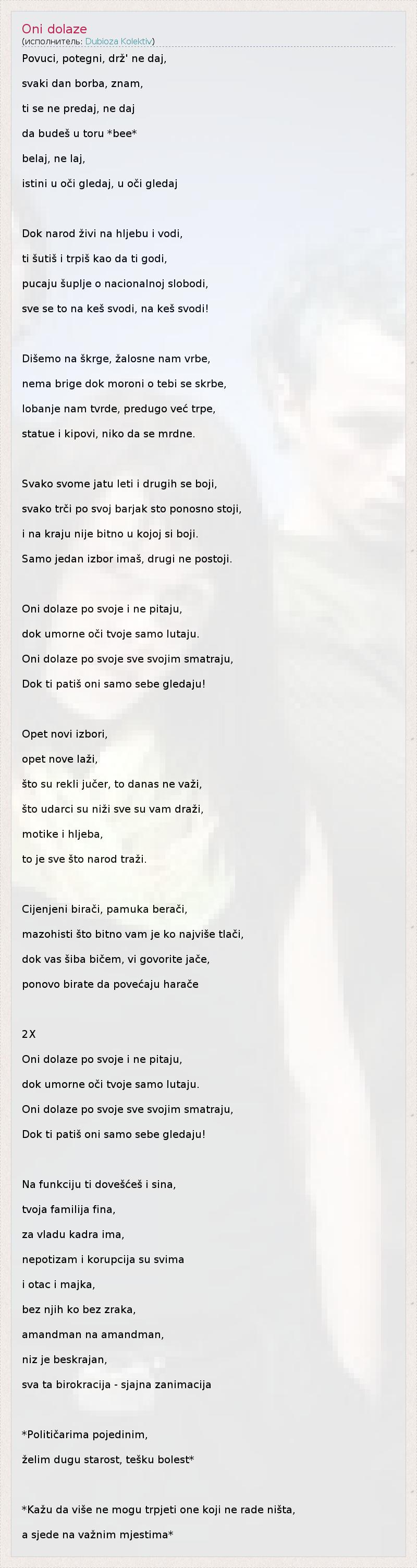 А как ты думаешь, о чем песня "Oni dolaze" ?