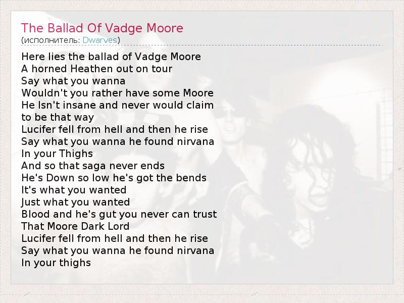 А как ты думаешь, о чем песня "The Ballad Of Vadge Moore" ?