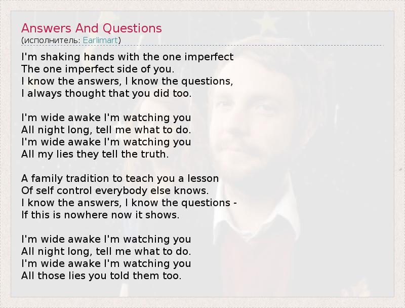 ГлавнаяИсполнителиEarlimartAnswers And Questions