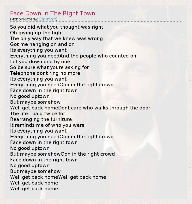 А как ты думаешь, о чем песня "Face Down In The Right Town" ?