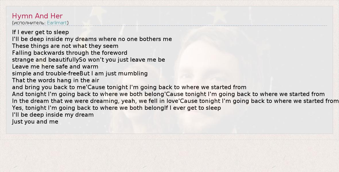 А как ты думаешь, о чем песня "Hymn And Her" ?
