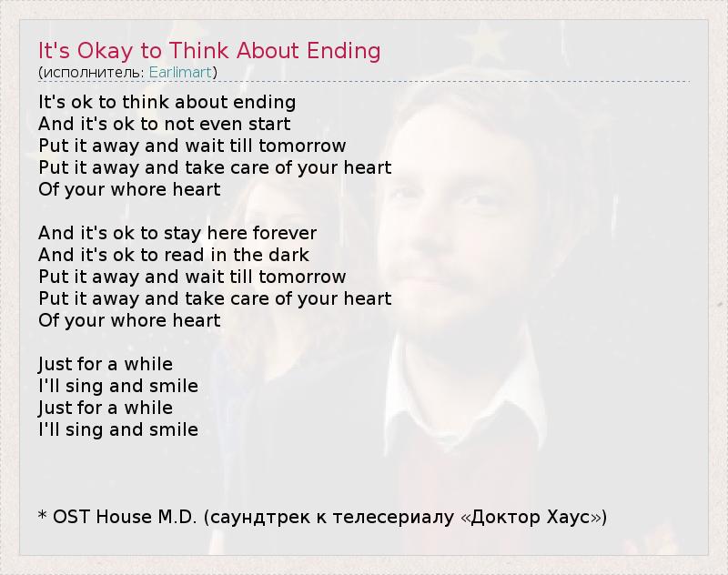 А как ты думаешь, о чем песня "It's Okay to Think About Ending" ?