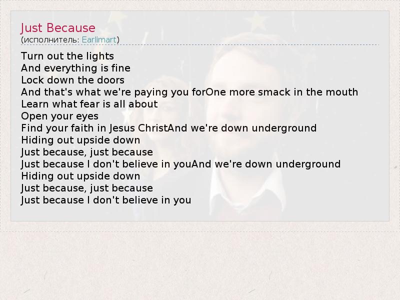 Это интересно:Earlimart - независимая рок-группа из Лос-Анджелеса, Калифорния. Earlimart - это название города Earlimart, Калифорния. Их музыка схожа с Эллиоттом Смитом и Дедушкой, известным среди современников как Pedro the Lion, с которым они выступали в 2004 году. Шестой альбом группы называется "Hymn and Her" и был выпущен 1 июля 2008.Участники * Aaron Espinoza вокалист/гитарист * Ariana Murray басист/клавишник/вокалистДискография... продолжение