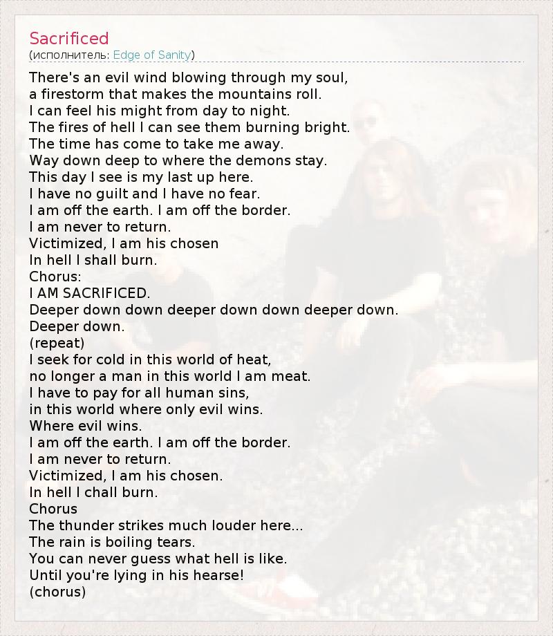 А как ты думаешь, о чем песня "Sacrificed" ?