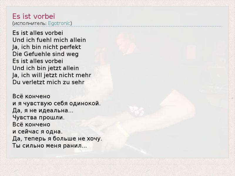 А как ты думаешь, о чем песня "Es ist vorbei" ?