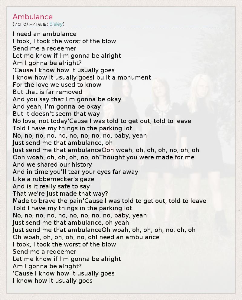 Just send me that ambulance, oh