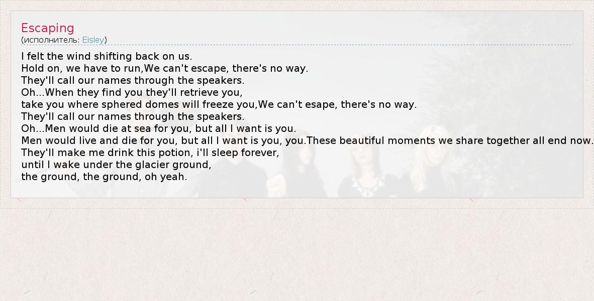 А как ты думаешь, о чем песня "Escaping" ?