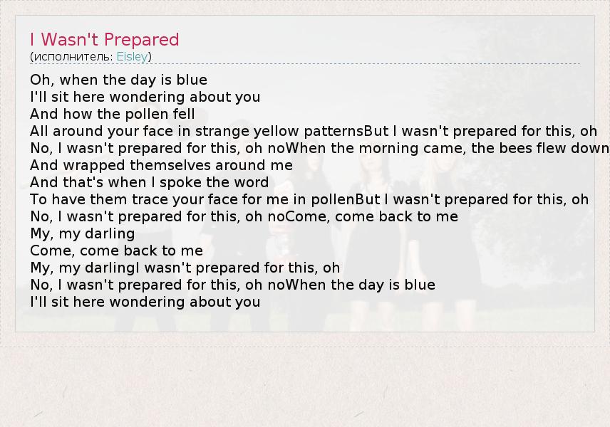 А как ты думаешь, о чем песня "I Wasn't Prepared" ?