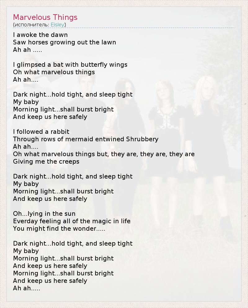 А как ты думаешь, о чем песня "Marvelous Things" ?
