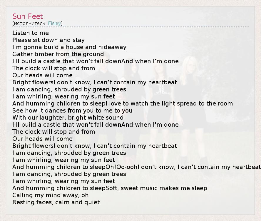 А как ты думаешь, о чем песня "Sun Feet" ?