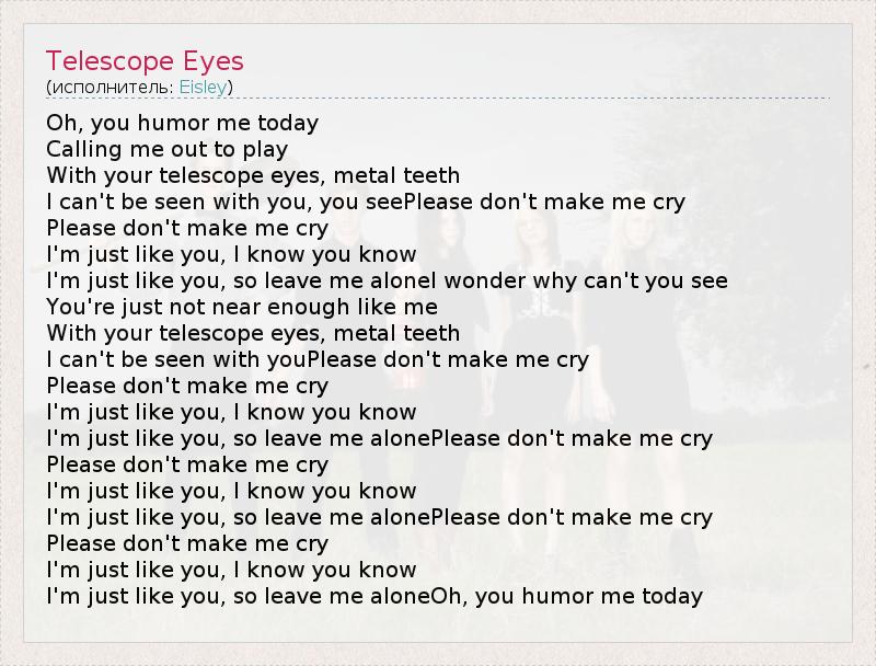 А как ты думаешь, о чем песня "Telescope Eyes" ?