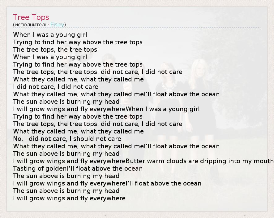 А как ты думаешь, о чем песня "Tree Tops" ?