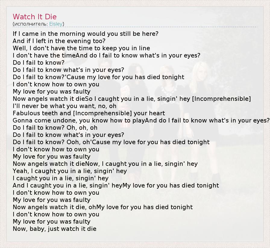 А как ты думаешь, о чем песня "Watch It Die" ?