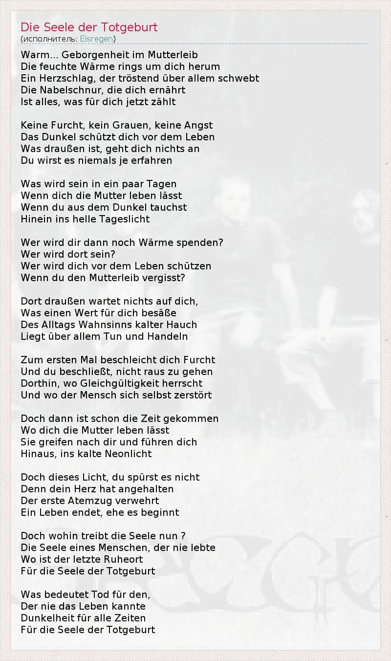 А как ты думаешь, о чем песня "Die Seele der Totgeburt" ?