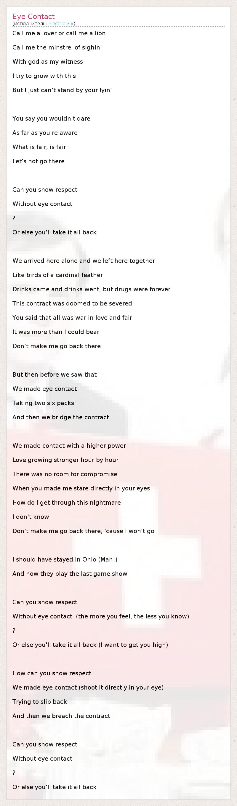 А как ты думаешь, о чем песня "Eye Contact" ?