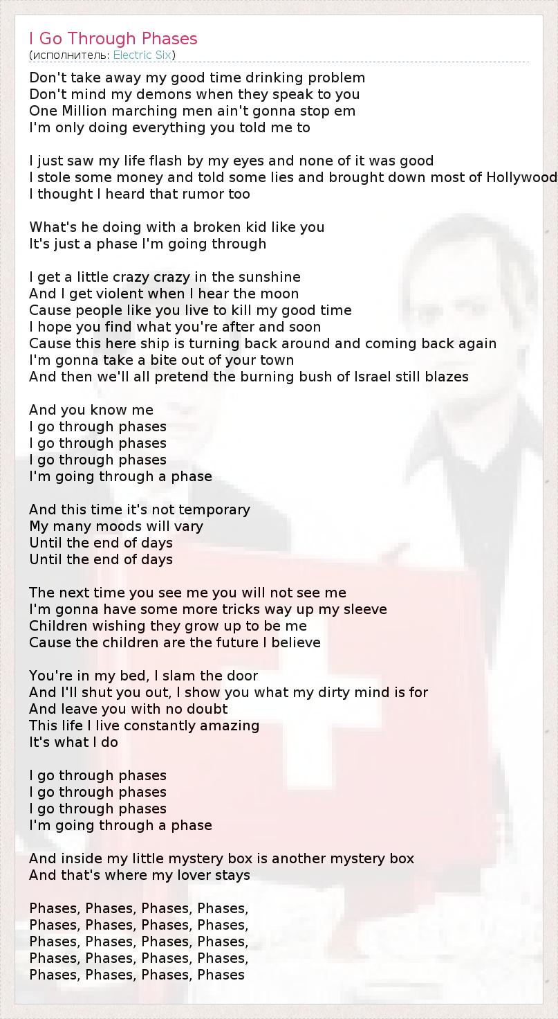 А как ты думаешь, о чем песня "I Go Through Phases" ?