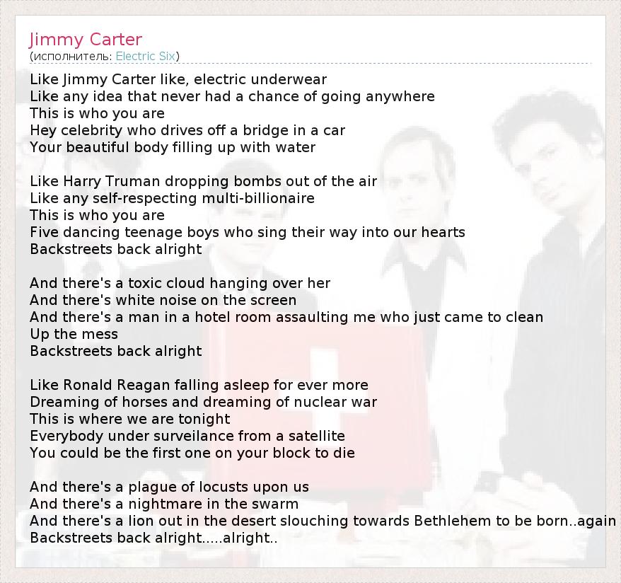 А как ты думаешь, о чем песня "Jimmy Carter" ?