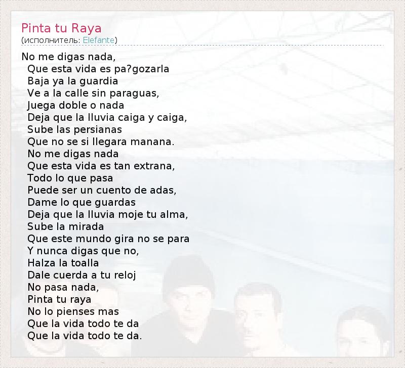 А как ты думаешь, о чем песня "Pinta tu Raya" ?