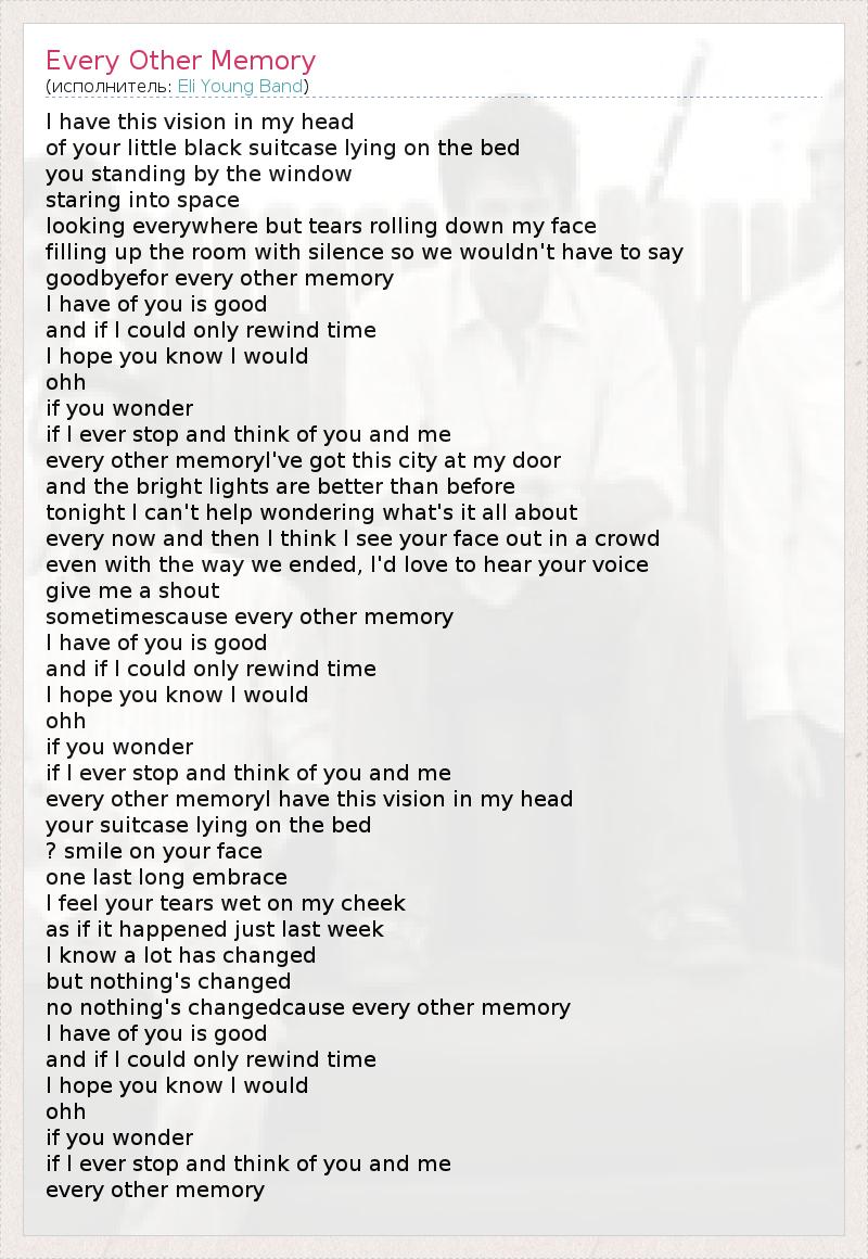 А как ты думаешь, о чем песня "Every Other Memory" ?