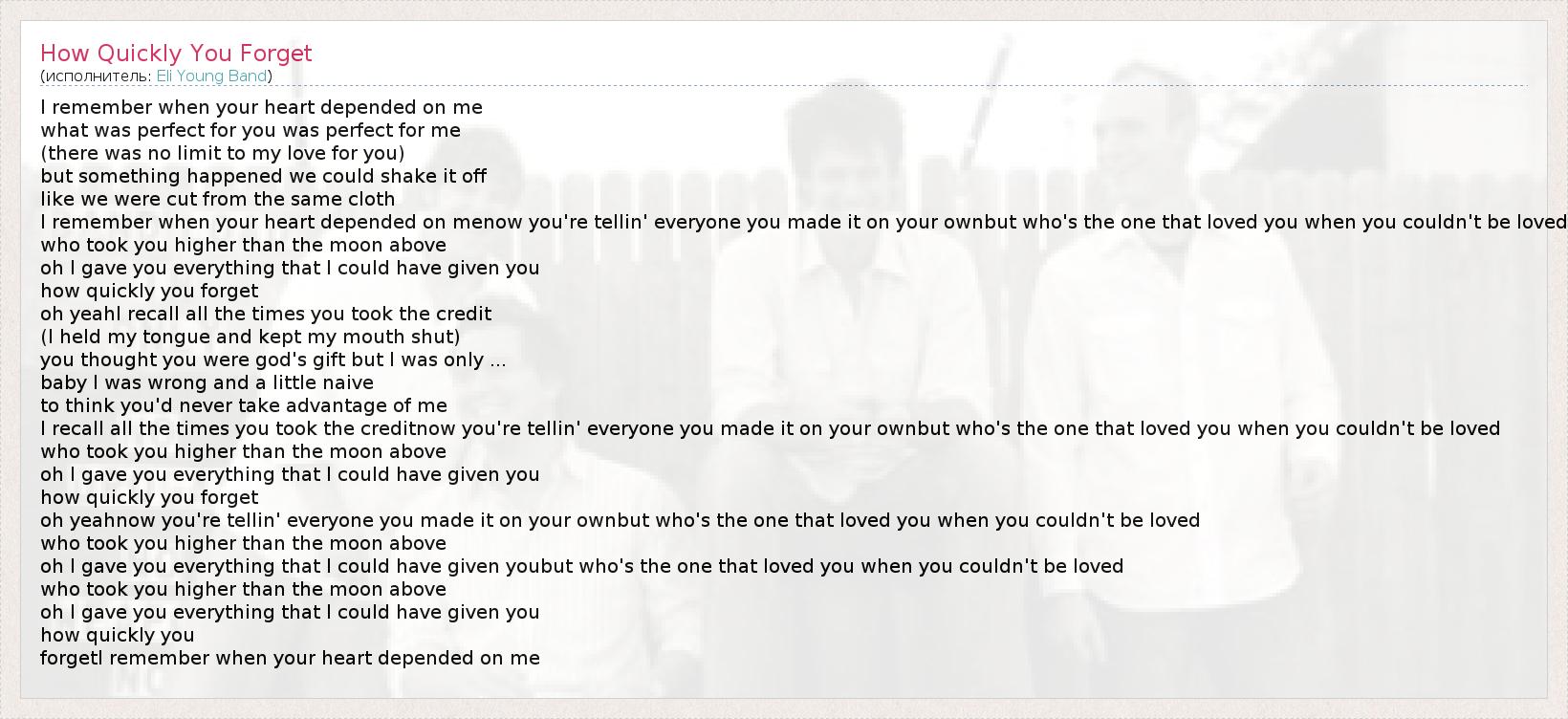 А как ты думаешь, о чем песня "How Quickly You Forget" ?
