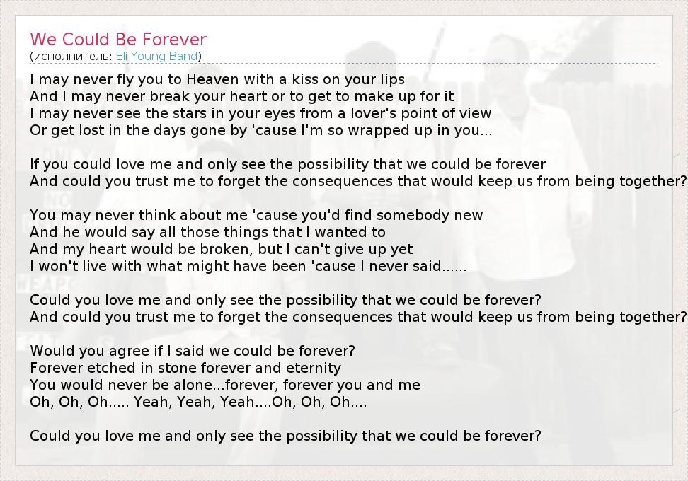 А как ты думаешь, о чем песня "We Could Be Forever" ?