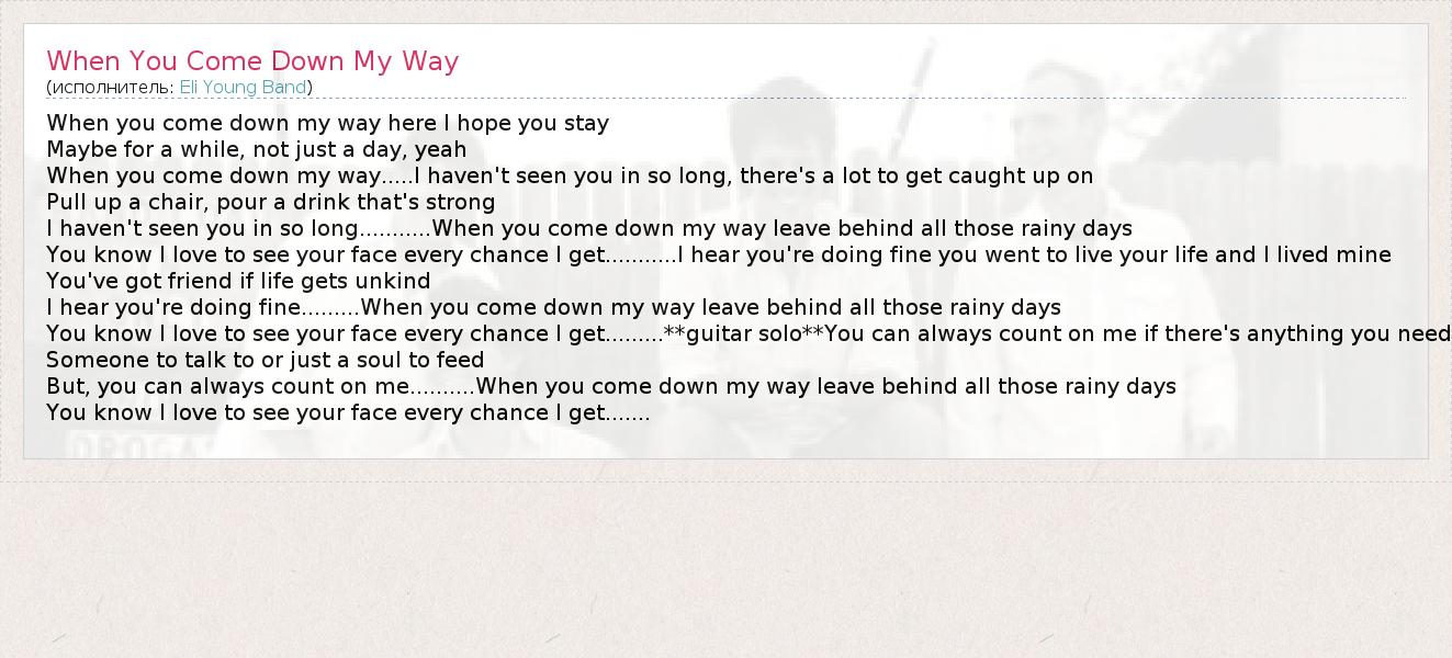 ГлавнаяИсполнителиEli Young BandWhen You Come Down My Way