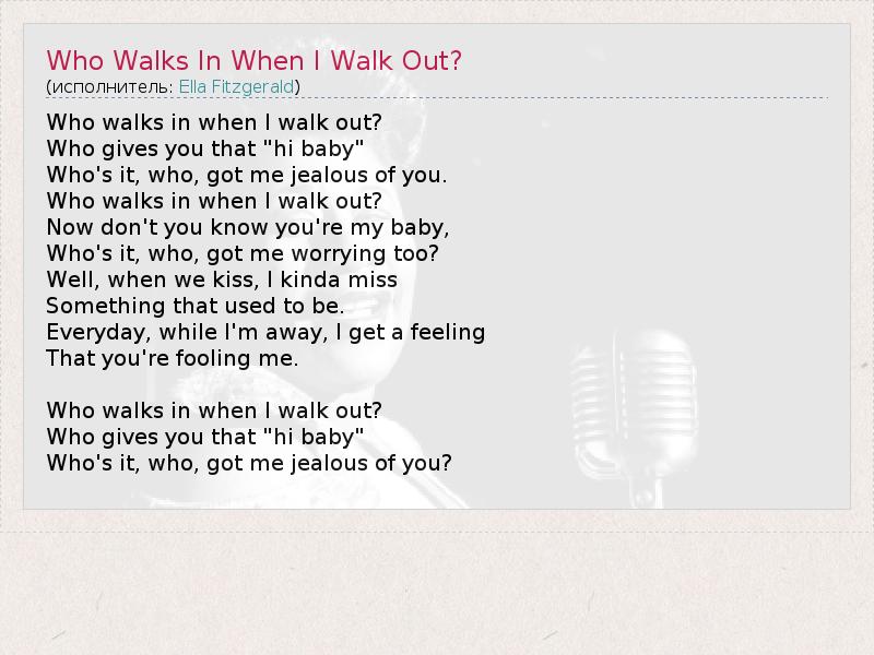 А как ты думаешь, о чем песня "Who Walks In When I Walk Out?" ?