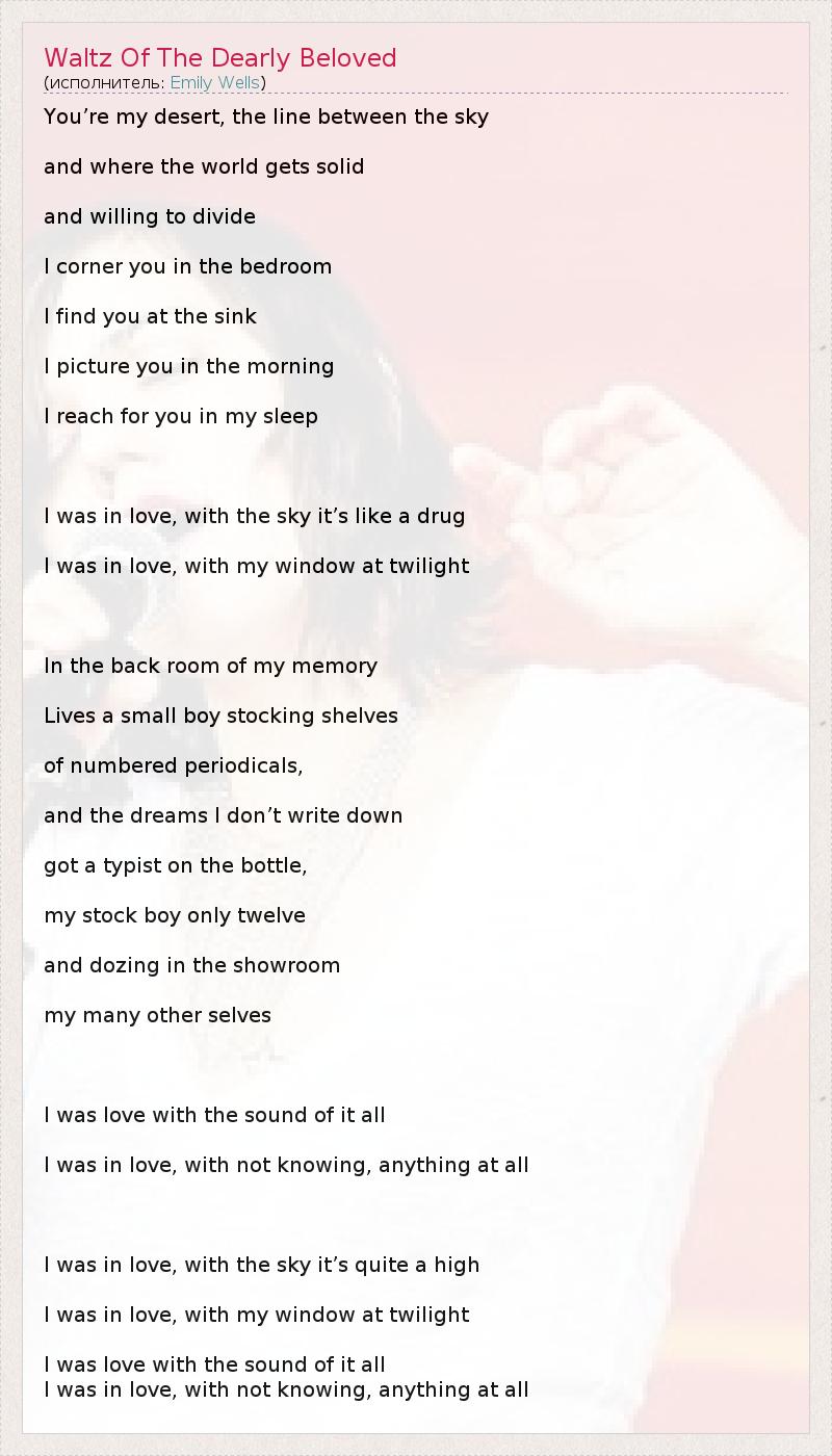 А как ты думаешь, о чем песня "Waltz Of The Dearly Beloved" ?