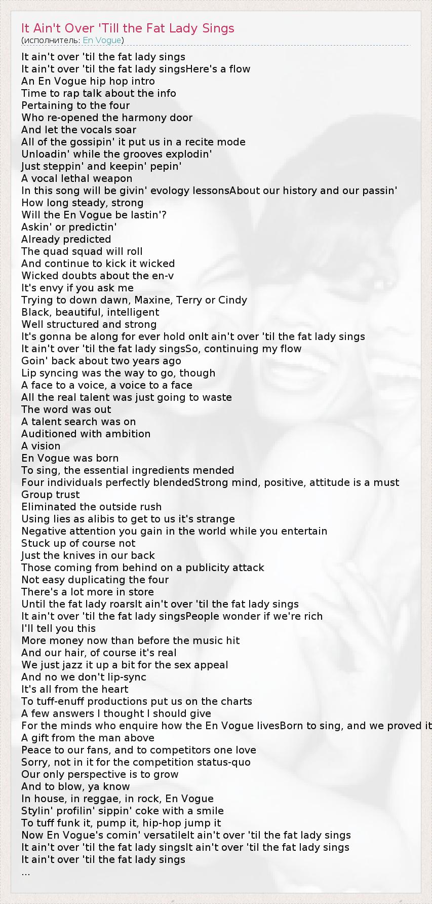 ГлавнаяИсполнителиEn VogueIt Ain't Over 'Till the Fat Lady Sings