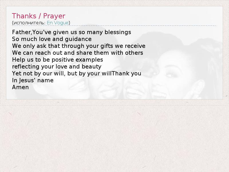 А как ты думаешь, о чем песня "Thanks / Prayer" ?
