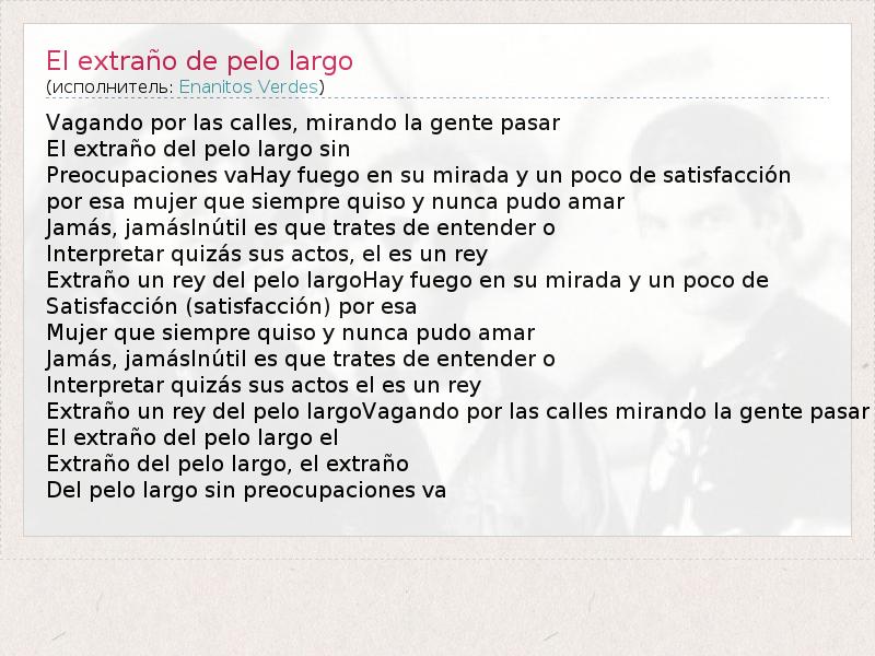 А как ты думаешь, о чем песня "El extraño de pelo largo" ?