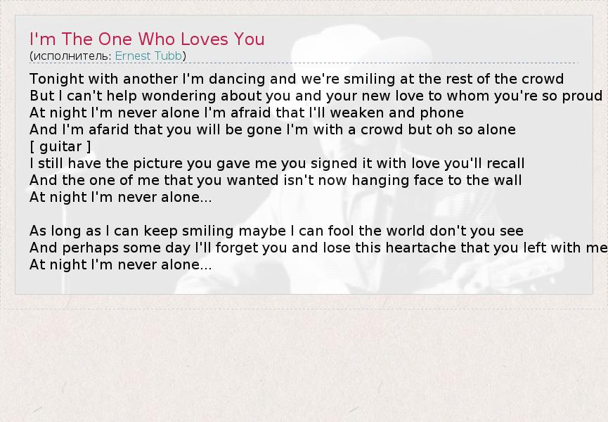 ГлавнаяИсполнителиErnest TubbI'm The One Who Loves You