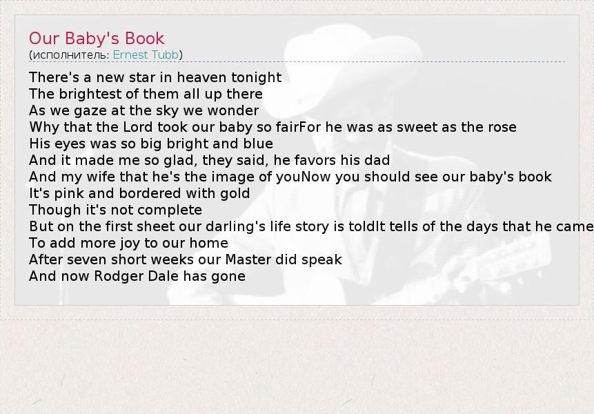 А как ты думаешь, о чем песня "Our Baby's Book" ?