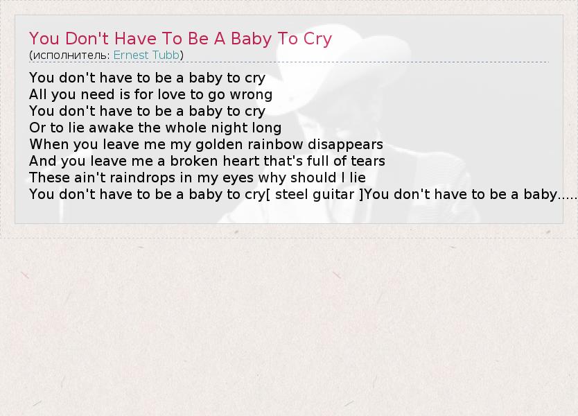 You don't have to be a baby to cry[ steel guitar ]You don't have to be a baby.....