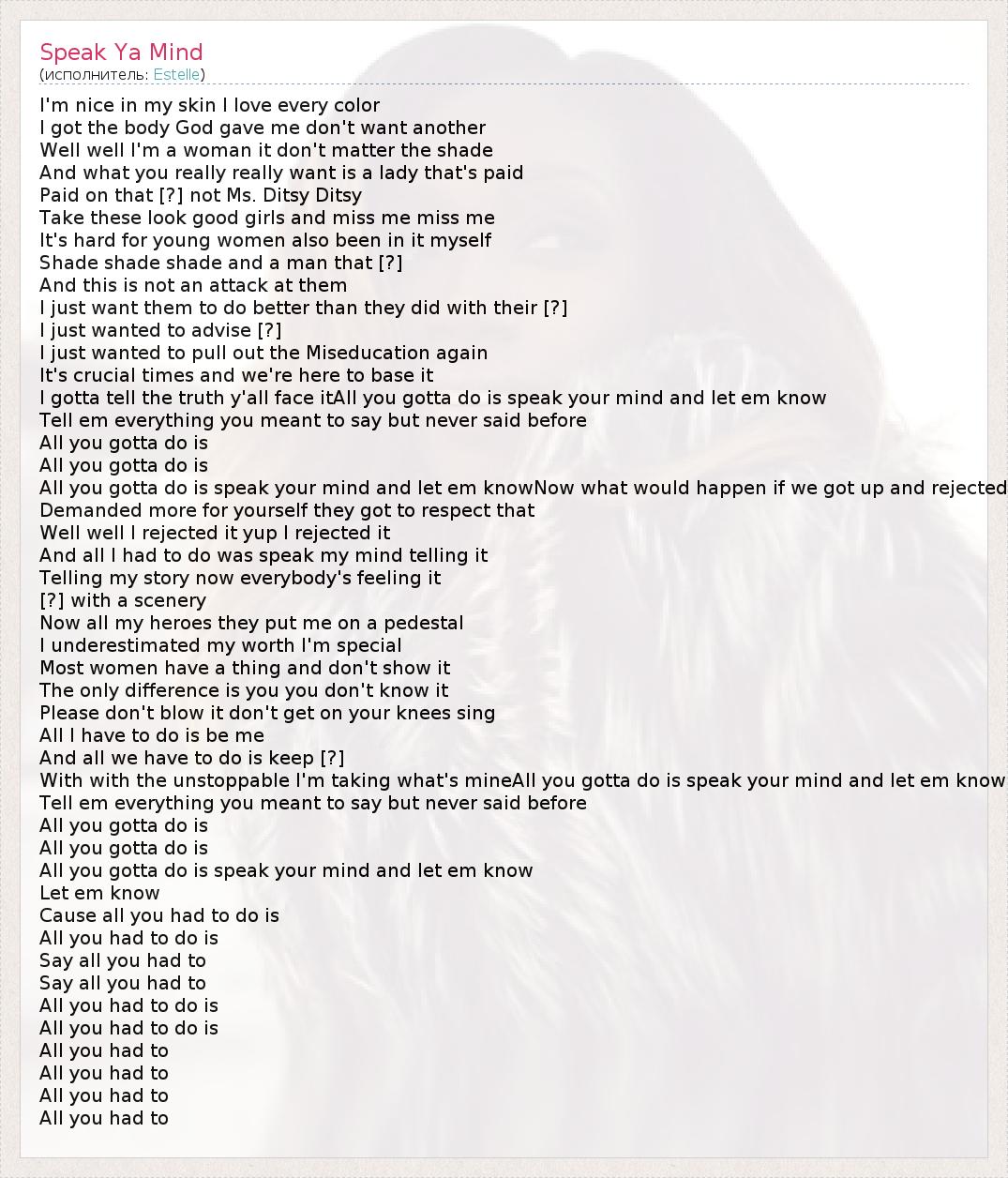 А как ты думаешь, о чем песня "Speak Ya Mind" ?