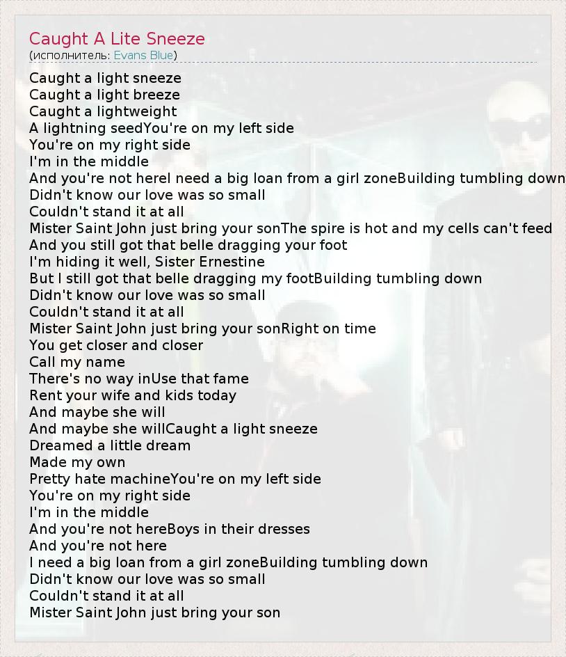 А как ты думаешь, о чем песня "Caught A Lite Sneeze" ?