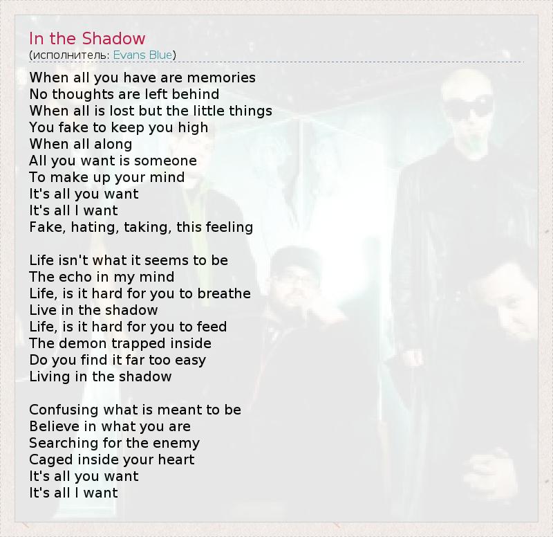 А как ты думаешь, о чем песня "In the Shadow" ?