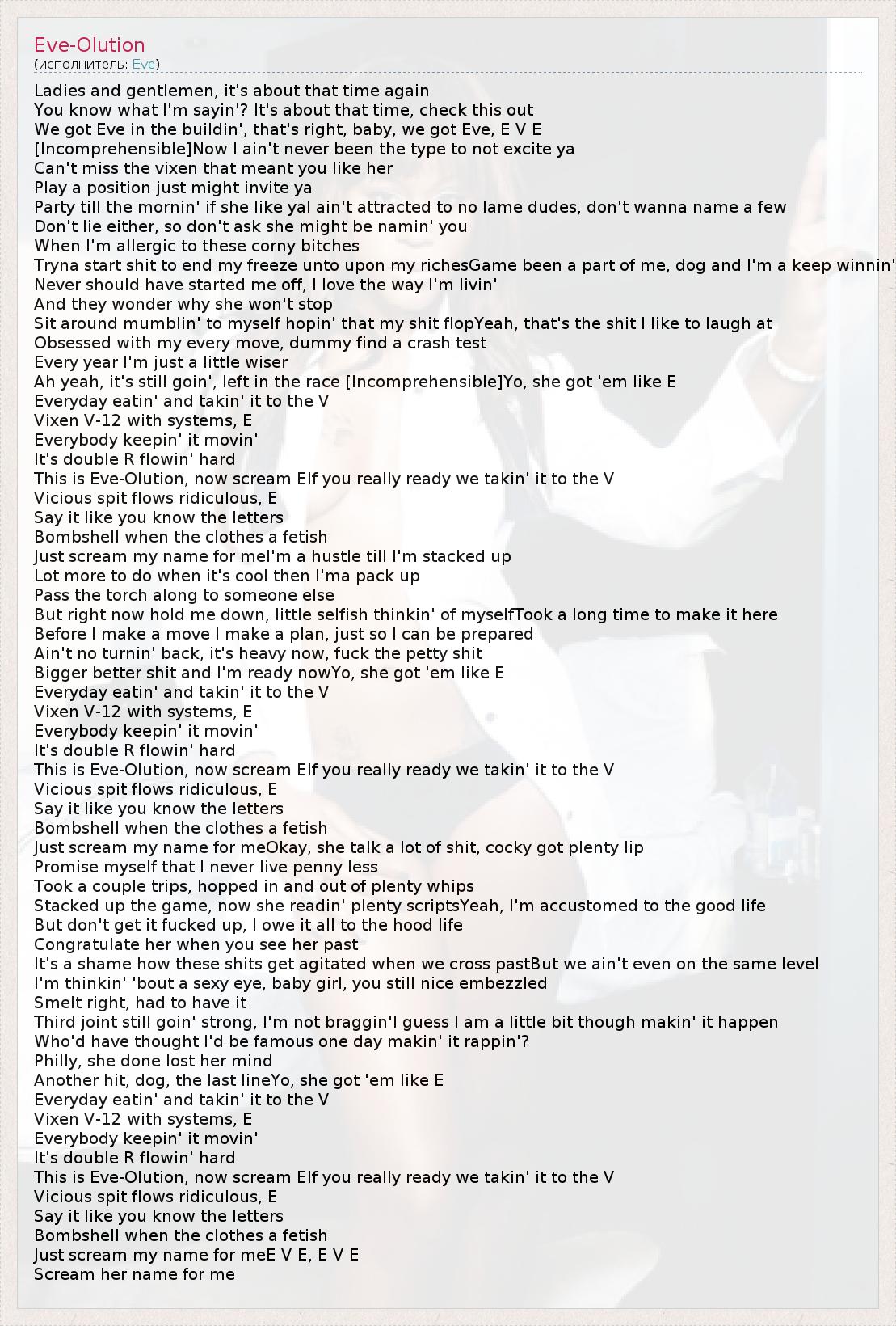 А как ты думаешь, о чем песня "Eve-Olution" ?