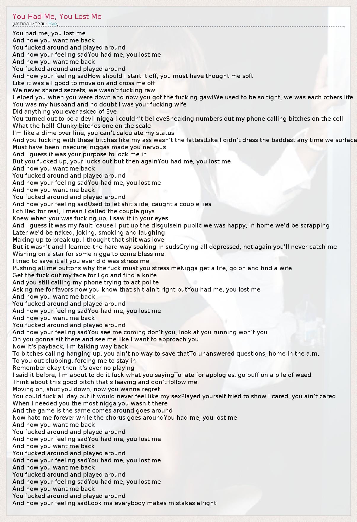 ГлавнаяИсполнителиEveYou Had Me, You Lost Me
